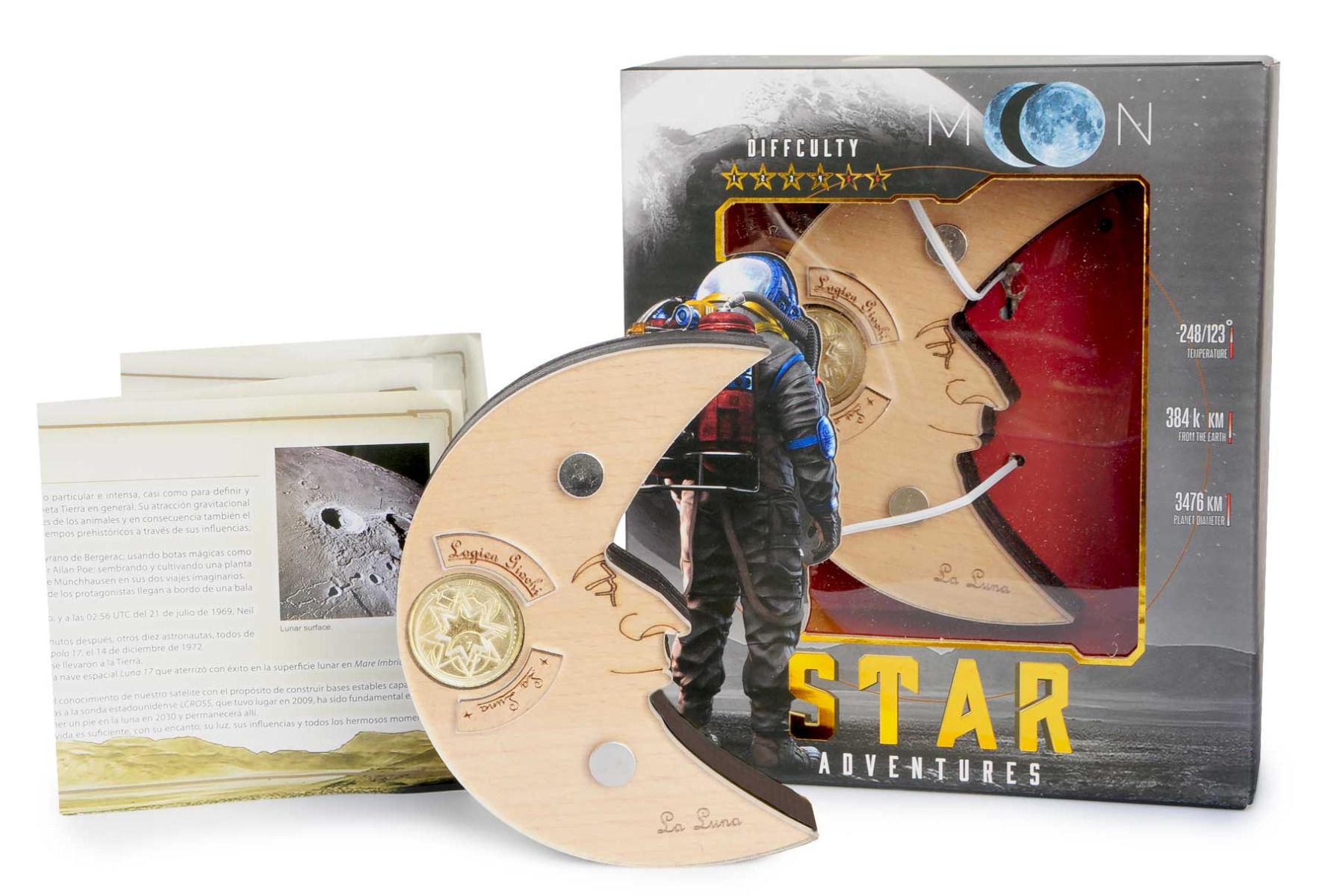 Leiktu og lærðu – í hverjum kassa finnur þú þrautina + bækling með forvitnilegum upplýsingum um geimhlutinn, myndir, sögu og mikilvæg staðreyndir.