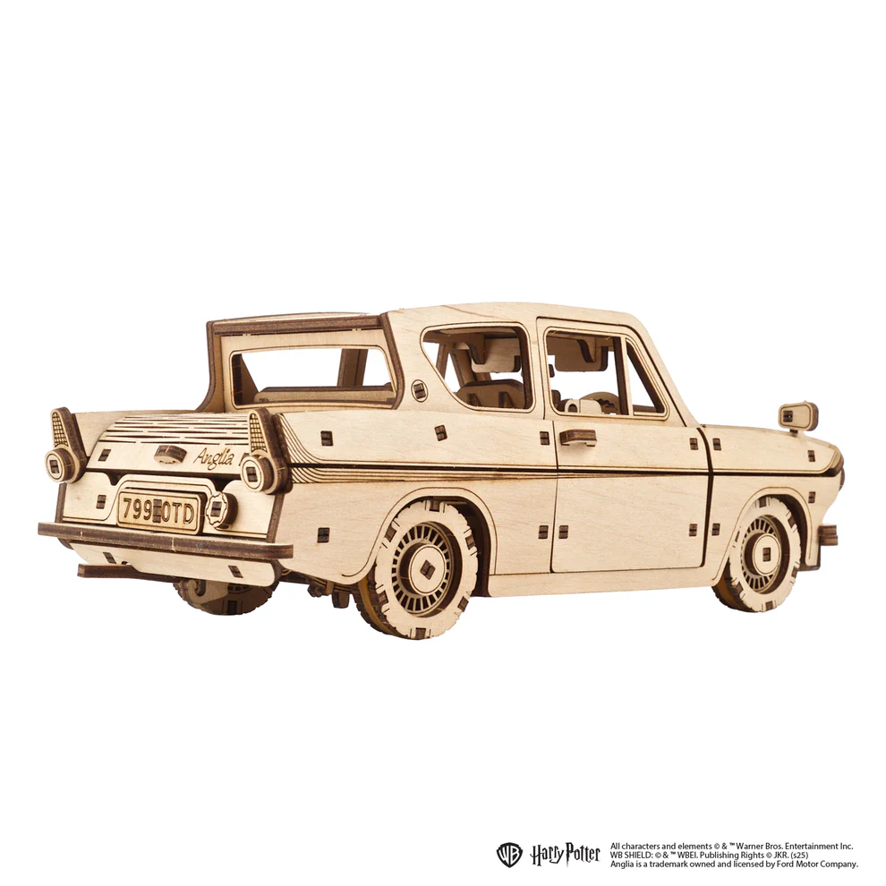 Ugears is pleased to introduce a unique automotive model to Harry Potter fans—the Flying Ford Anglia, a car with a mind of its own. The Anglia is a faithful recreation of the Weasley’s enchanted Muggle car. Who can forget the scene in “Harry Potter and the Chamber of Secrets” when Harry and Ron fly back to Hogwarts in the Anglia, lose control, and crash into the Whomping Willow? After a narrow escape, the young wizards and all their belongings get ejected by the car, upset at the abuse it has received.